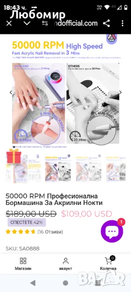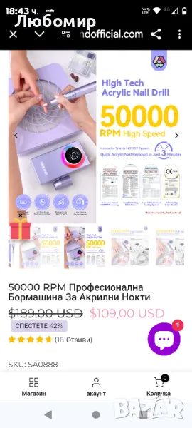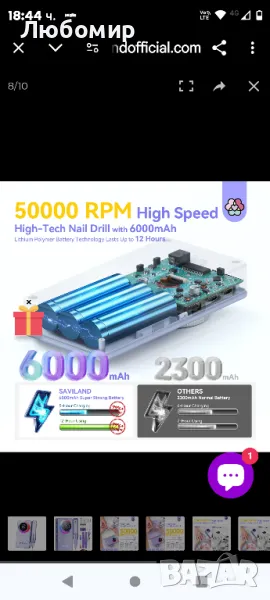 Липсват накрайниците.Високотехнологичната професионална електрическа бормашина за нокти с 50 000 RPM е предназначена за професионалисти. Ниска вибрация, нисък шум, ниска топлина, нулев дискомфорт, оборудван с усъвършенстван BLDC мотор, високоефективна охладителна система и конструкция от алуминиева сплав от авиационен клас, тази високотехнологична бормашина за акрилни нокти минимизира вибрациите за гладка работа. Насладете се на шепотно тихо изживяване с ниво на шум от само 40 dB, докато ниската топлина при 25 ℃ гарантира безопасност и комфорт. Професионалната електрическа бормашина за нокти с 50000 RPM е предназначена за професионалисти, тя може да премахне най-дебелите акрилни нокти за 3 минути с усъвършенствана MOSFET технология. 6000mAh батерия за 12-часова употреба】Електрическата бормашина за нокти с 50000RPM разполага с мощна батерия от 6000mAh, осигуряваща 12 часа непрекъсната употреба при 5-часово зареждане. Работете върху ноктите си навсякъде, без да се притеснявате за мощността, извършвайки приблизително 2400 бързи премахвания преди презареждане. Насладете се на удобство и спокойствие с удължен живот на батерията, елиминирайки честите изключвания и сривове.Бормашината за акрилни нокти с 50 000 оборота в минута е създадена, за да издържи на тежка употреба, с издръжлива конструкция. Той разполага с дълготрайна батерия от 6000mAh за продължителна употреба и красив лилав цвят, който не избледнява. Функционалната система за осветление и устойчивите на ръжда 13 професионални свредла допринасят за неговата гъвкавост. Със своята здрава конструкция и качествени материали, тази бормашина за нокти е проектирана да се справя с изискванията на професионалната грижа за ноктите в продължение на години.