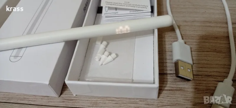 Чисто нова неизползвана писалка комплект със резервни глави,кабел за зареждане инструкции и кутия