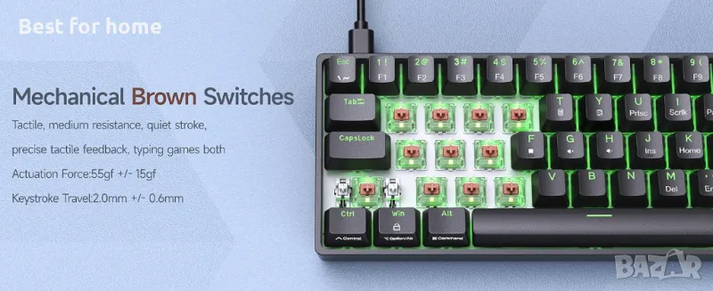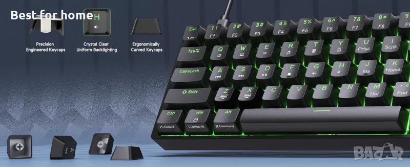 【Готина LED подсветка】 Механичната клавиатура DK61SE е с фиксиран цвят на осветяване, но не е скучна. Можете да превключвате между 19 вградени режима на подсветка и да регулирате яркостта и скоростта на подсветката чрез клавишни комбинации.