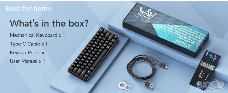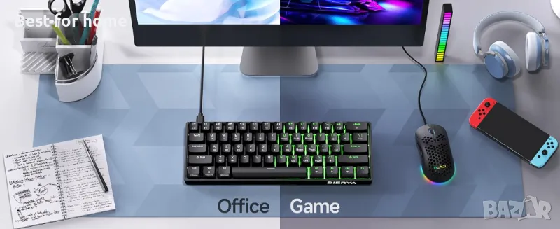 【Минимализъм】 DK61se е механична игрална клавиатура с 61 клавиша с всички функции, реализирани чрез клавишната комбинация "FN". Ултракомпактната структура ви позволява да увеличите максимално използването на пространството на работния плот и мишката.