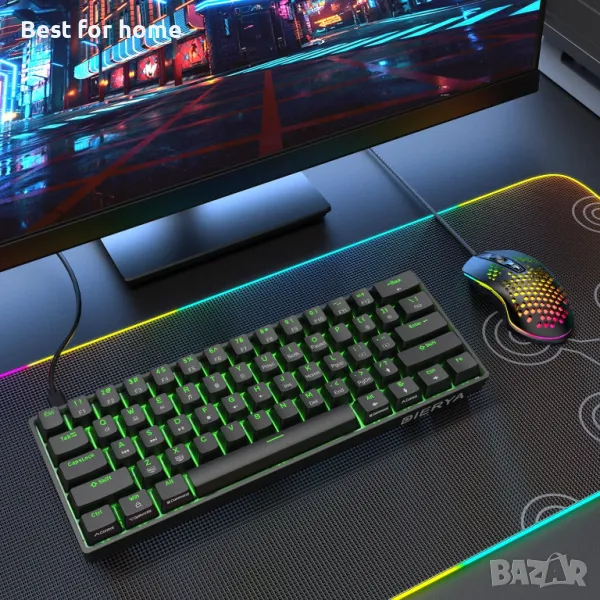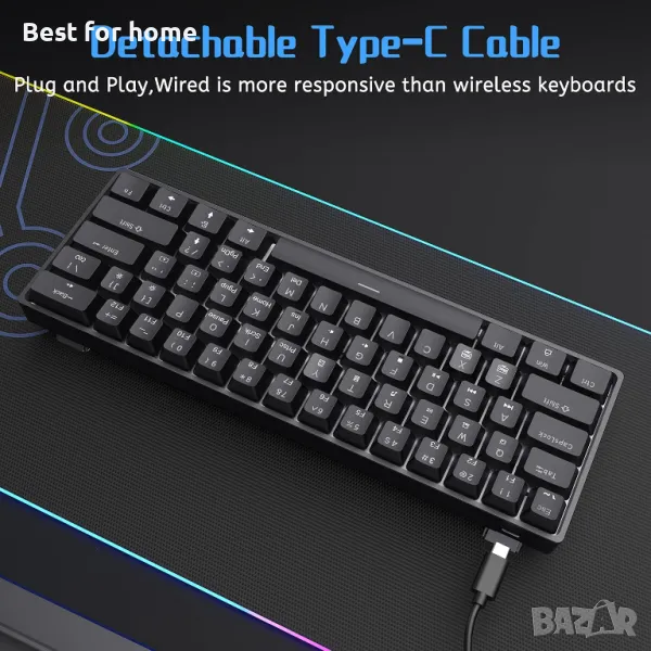 DIERYA 60% механична клавиатура, DK61se кабелна игрална клавиатура със сини превключватели, LED подсветка, ултракомпактна 61 клавиша, мини офис клавиатура за лаптоп с Windows, компютър, геймър,