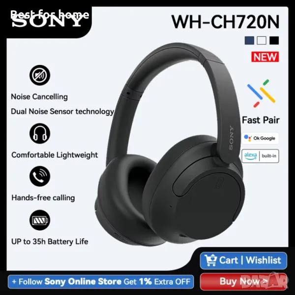 Заглушете света - технологията с двоен сензор за шум и вграден процесор V1 постигат ново ниво на шумопотискане. Вече можете да заглушите света около вас и да се потопите в музиката с WH-CH720!