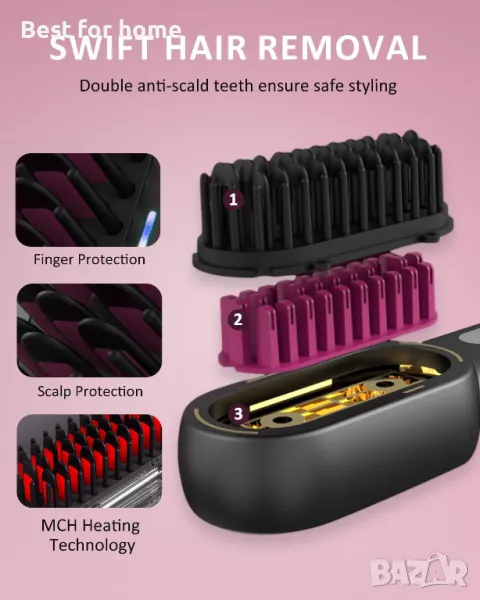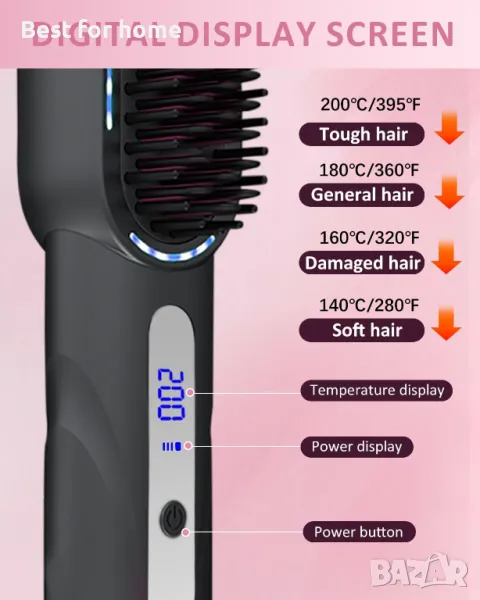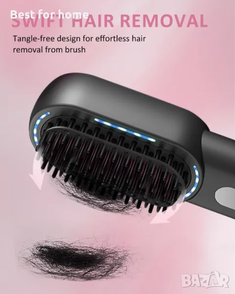 КОМПАКТНО БЕЗКОБЕРЛНО УДОБСТВО: Тази четка за изправяне е проектирана за лесно боравене и оформяне в движение. Безжичният дизайн ви освобождава от ограниченията на електрическите контакти и заплетените кабели, гарантирайки, че можете да оформяте косата си по всяко време и навсякъде с лекота. Неговата елегантна, лека конструкция го прави перфектен спътник при пътуване, гарантирайки, че винаги поддържате безупречен външен вид, където и да се движите.