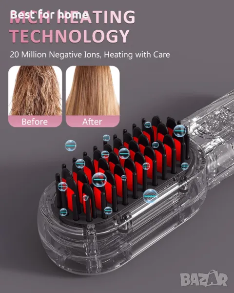 ИНТЕНЗИВНИ ОТРИЦАТЕЛНИ ЙОНИ: Има функция за освобождаване на до 20 милиона отрицателни йони, което означава, че може ефективно да намали статичното електричество и накъдрянето, да направи вашата прическа по-гладка и мека и също така да запази ефекта на прическата за по-дълго време. Нека се отървете от ограниченията, свободни да се насладите на забавлението от разресването на красива коса, по всяко време и навсякъде, за да покажете очарователен стил!