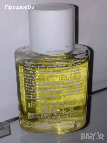 3. Тонизиращо масло за тяло Clarins Aroma Tonic Body Treatment Oil- 100% чисти растителни масла; предназначение: изглаждане на кожата, против стрии, тонизиране, укрепване; бутилката е 30 мл., от които липсват около 5 мл.;