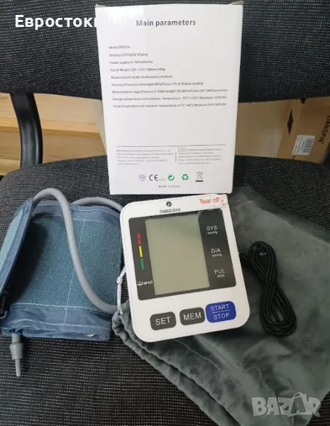 Автоматичен монитор за кръвно налягане за напълно автоматично измерване на кръвното налягане. Просто увийте маншета около горната част на ръката си и натиснете бутона за старт/стоп. Отчитането се показва на екрана след 30 секунди и автоматично се изключва след няколко секунди.