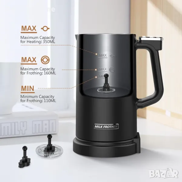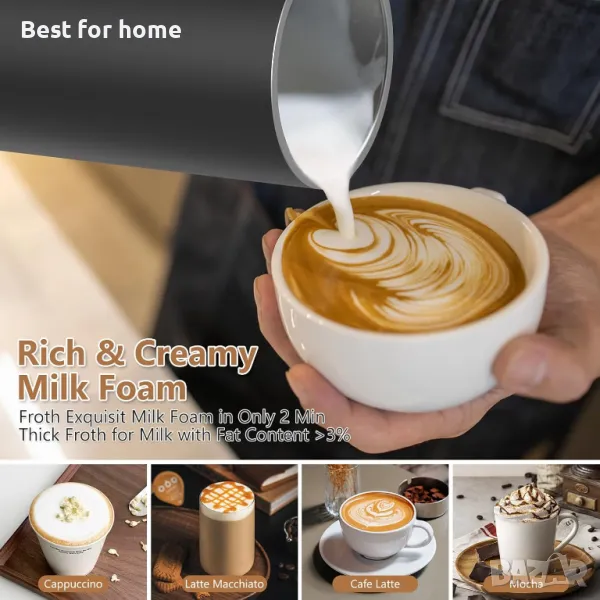 С управлението на един бутон автоматичният пенообразувател за мляко може да достави висококачествена студена или гореща млечна пяна за секунди, можете да приготвите най-доброто си лате и капучино по всяко време. Неговата ергономична структура и завладяващ дизайн го правят задължителен. Представете си, че имате модул, който допълва вашия декор и същевременно върши прилична работа. Разпенвателят за кафе с мляко несъмнено се вписва перфектно във вашия дом.