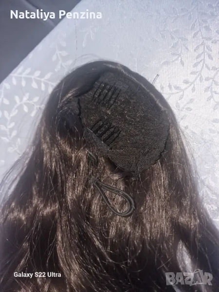 Екстейшан, кестенява дълга 40 см опашка направена е като джоб /кок/ с гребенче → Обява 48456576