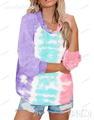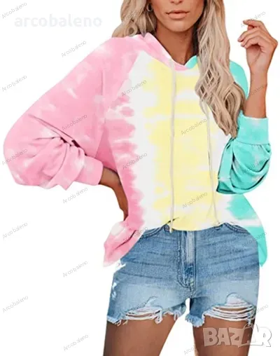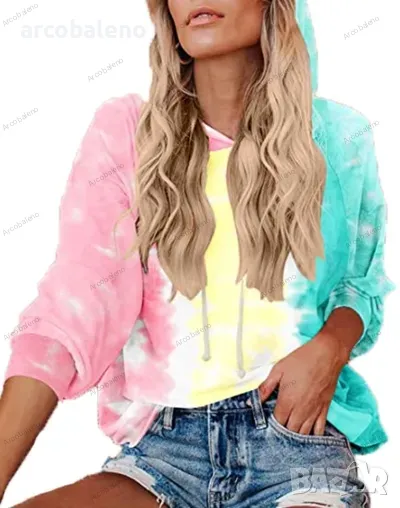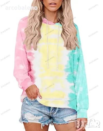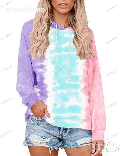 Нов дамски суичър с качулка Tie Dye, 3цвята