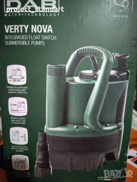Потопяемата помпа за вертикално подаване е подходяща за битови автоматично управлявани приложения, за източване на мазета и гаражи, които са обект на наводнение. Благодарение на своята компактна и лесна за обработка форма и вградения поплавък, той е подходящ за особено малки дренажни кладенци (минимум 20х20 см). Може да се използва и като преносима помпа за аварийни ситуации като вдигане на вода от резервоари или реки, изпразване на басейни, фонтани, изкопи и подлези. Също така е идеален за градинарство и хоби приложения като цяло.Тази помпа може да се използва с течности, съдържащи твърди частици с размер до 5 mm. Превключвателят за ниво с вграден поплавък позволява фиксиран монтаж, осигуряващ автоматична работа. С лесен достъп до поплавъка с цел поддръжка и автоматичен или ръчен селектор на режима. Минимално ниво на засмукване до 2/3 mm.