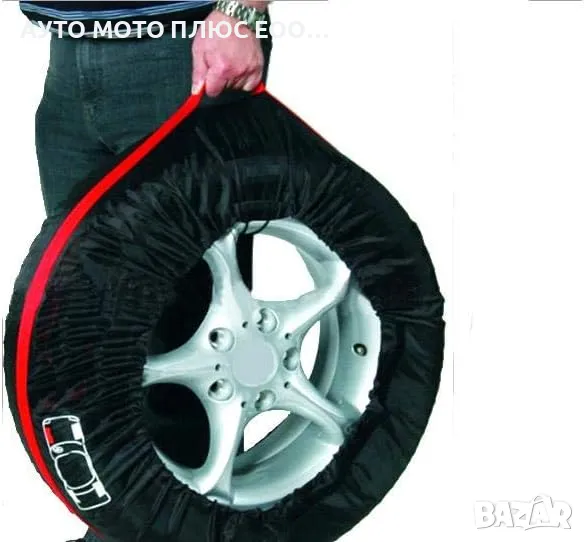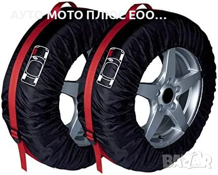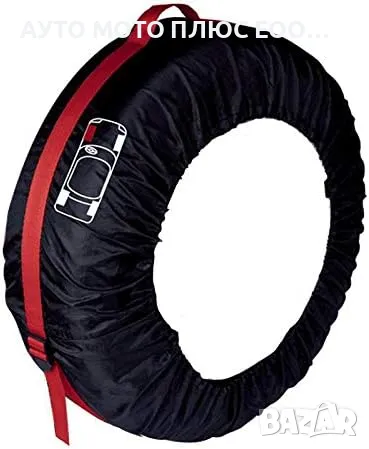 Калъфи 4 броя за съхранение на гуми в черен цвят с червени ленти.
