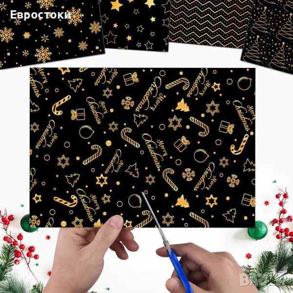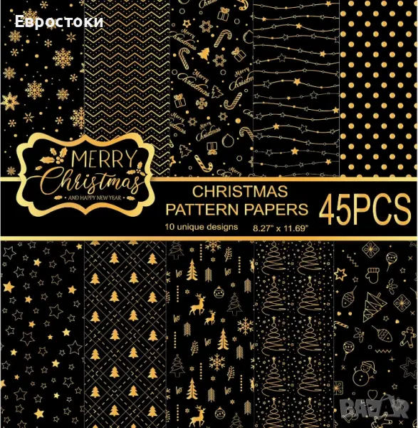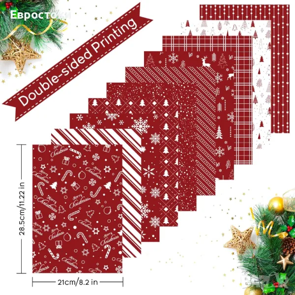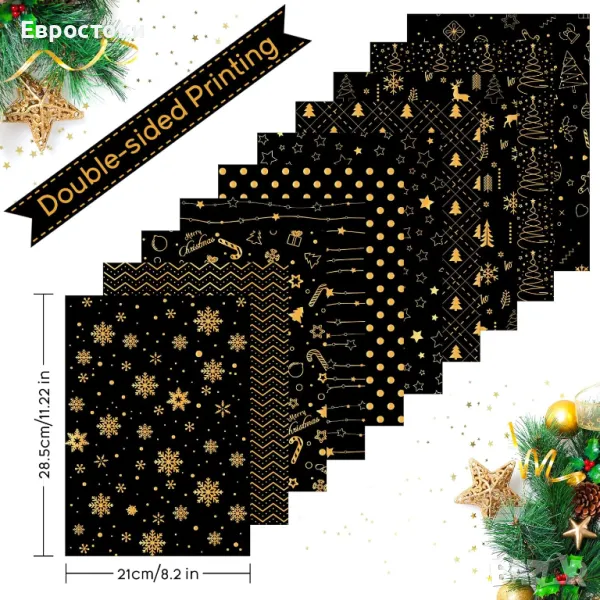 MIAHART 45 двустранни листа. Комплект дизайнерска коледна хартия, с 10 дизайна, перфектна за картички, албуми и скрапбук проекти! размер A4 - червено – бяло, Черно - златисто