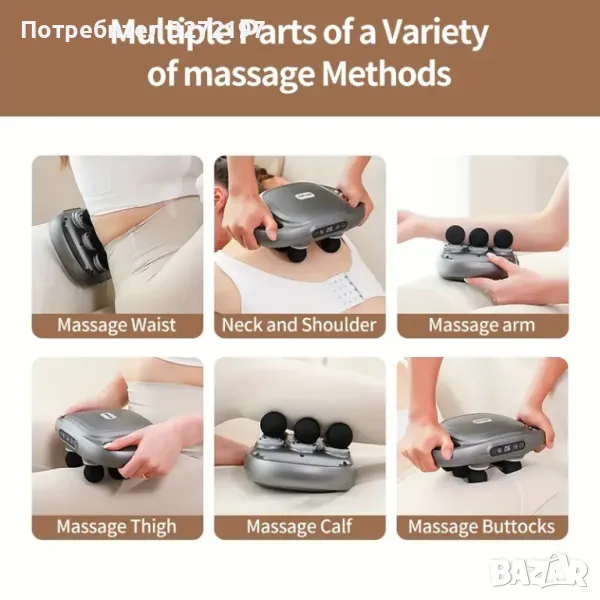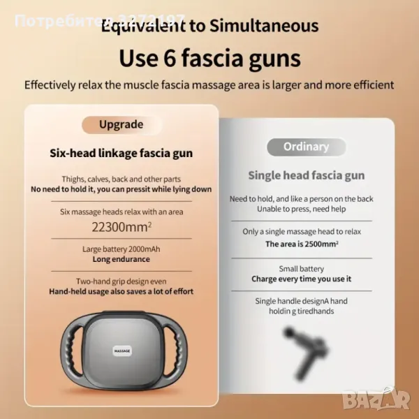 Професионален клас Електрически фитнес масажор с дълбока вибрация с 6 глави.