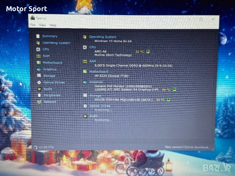 Процесор: AMD A6-7310 4Ядра по 2,00GHz.
