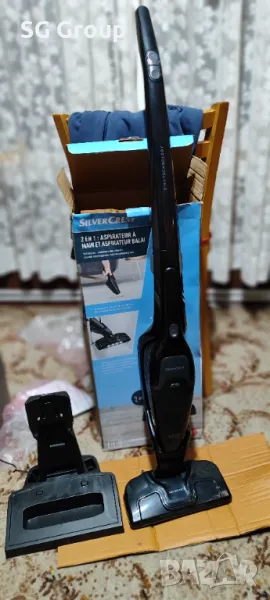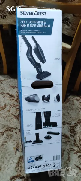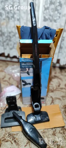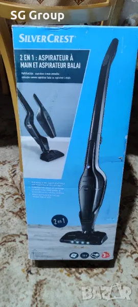 Акумулаторна прахосмукачка Silver crest.Работи без кабел ,вградено осветление в основата.Възможнот за отделяне и ползване като малка прахосмукачка,за кола и др.