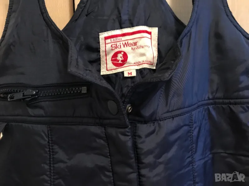 Ски панталон размер М, цвят тъмно син, размери едностранно: талия 40 см., дължина от четала до долу 75 см., дължина от гърдите до долу 110 см. В отлично състояние, обуван е веднъж за снимки. Има разтегателна платка в ханша, джобче с цип отпред, подплата с ластик на крачолите и презрамки с регулиране на дължината им.