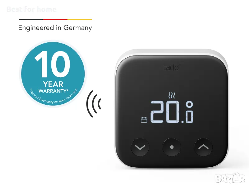 най-лесният тип интелигентен контрол на температурата: пестете енергия и разходи – без усилия или жертване на комфорта. Където е най-важно Измерете температурата на точно определено място в дома си, вместо директно при източника на топлина. Направи си сам инсталация Инсталирайте tado° сами само за няколко минути с помощта на приложението. Поставете безжичния температурен сензор X на стена или повърхност по ваш избор или изберете подходяща стойка за вашето устройство. Един за всички Контролирайте няколко радиаторни термостата X в една стая, всички от едно устройство с безжичен температурен сензор tado° X Технология, ориентирана към бъдещето Управлението на вашия интелигентен дом стана още по-лесно. tado° използва универсална технология, която позволява широка гама от устройства във вашия дом да се свързват към надеждна мрежа. Той е толкова здрав, че проблемите с връзката са нещо от миналото. Подробности за продукта: Безжичен температурен сензор X Какво има в кутията? Размери Захранване Интернет връзка Материал Потребителски интерфейс контрол Многоезична поддръжка Гаранция Повече tado° устройства, повече икономии на енергия Разширете настройката на tado° и контролирайте няколко стаи поотделно чрез приложението. За допълнително удобство и повече спестявания. tado° X поддържа универсалния стандарт за интелигентен дом Matter и работи с Google, Apple и Alexa. За стандартизиран контрол във вашия интелигентен дом.
