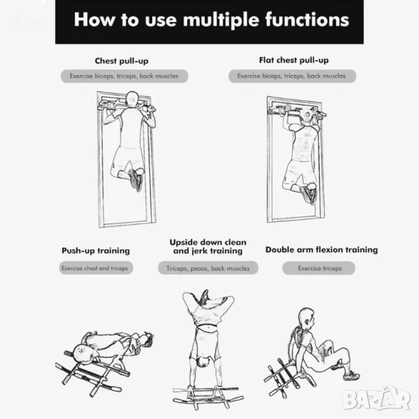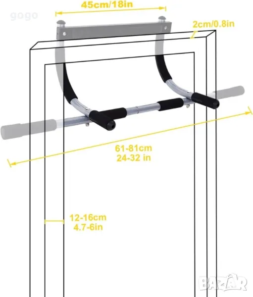 door trainer - Регулируема щанга за набирания, тренажор за набирания до 200 килограма → Обява 48458413