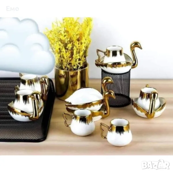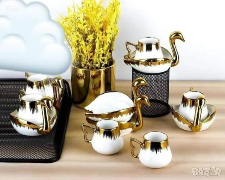 Луксозният порцеланов комплект от чаша и чинийка с мотив на лебед е изключително елегантно и изискано решение за сервиране на вашите напитки и десерти.