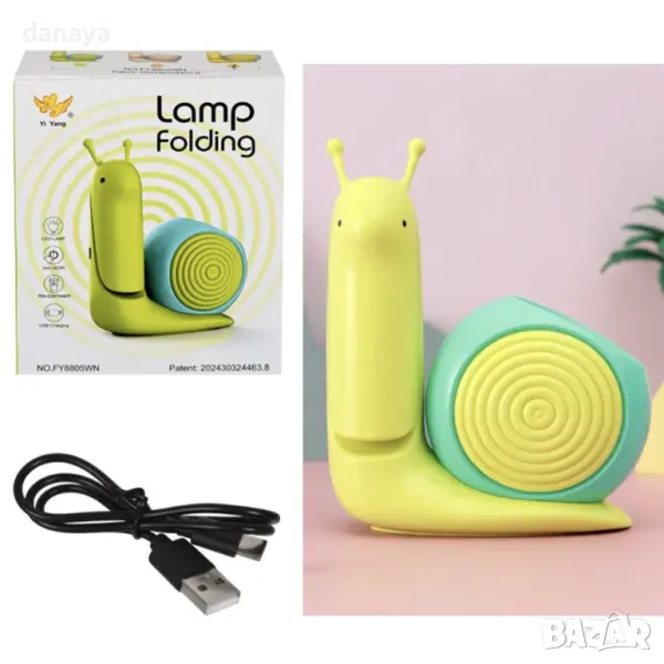 настолна LED лампа, лампа с моливник, лампа охлювче, лампа USB зареждане, нощна лампа, детска нощна лампа, настолна лампа за деца, лампа за бюро, функционална лампа, лампа 2 в 1