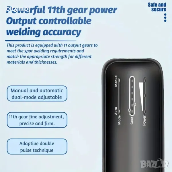 Устройството е оборудвано само с два бутона, ясно обозначени, което го прави много лесно за използване. Той предлага 11 регулируеми нива на мощност, адаптивни в зависимост от материалите, които заварявате. Например: