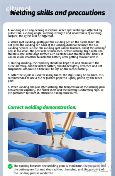 Заваръчният апарат е идеален за работа с различни видове цилиндрични батерии, като 18650/26650/36650, както и батерии за мобилни телефони или други електронни устройства, които изискват ремонт. Той е идеален за подмяна на повредени батерии, спестява пари и помага за опазване на околната среда чрез удължаване живота на електронните устройства.