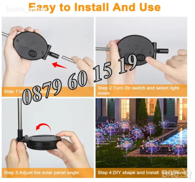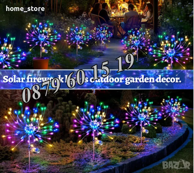 2 броя Градинска соларна лампа Заря, соларна лампа Фойерверки → Обява 48460248