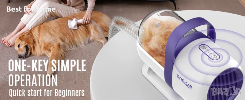 Вакуум за подстригване на кучета у дома за начинаещи: Работа с един бутон за лесно управление, лек дизайн за удобна продължителна употреба и мощно засмукване за ефективно отстраняване на косми от домашни любимци от килими, мебели и подове. Предлага се с различни приставки за справяне с различни повърхности. Тихият дизайн гарантира, че няма да безпокои вашите домашни любимци или членове на семейството. Доверете се на марката oneisall за най-доброто пазаруване