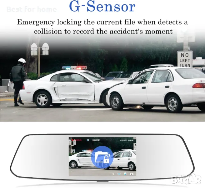 Вграден G-сензор, аварийно заключване на текущия файл и събирането му в друга папка за вас, когато открие сблъсък, за да запишете момента на инцидента.