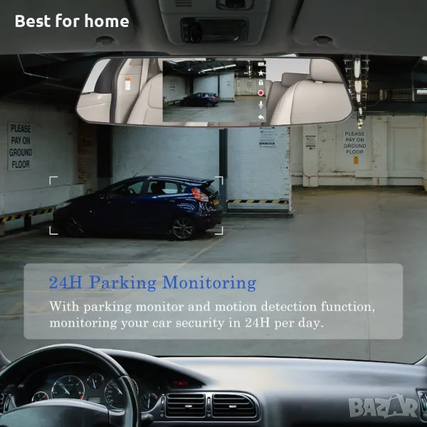 Откриване на движение: Ще се задейства функцията за откриване на движение и автоматично стартиране за запис и заключване на кратко видео, когато тази огледална камера за табло се включи и открие движение.