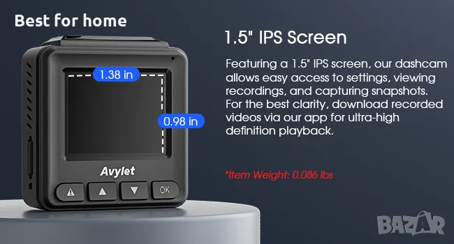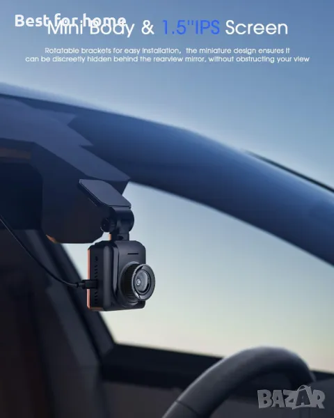 Дискретна камера с 1,5-инчов IPS екран. Компактният дизайн и мини корпусът гарантират, че може да бъде умело скрит зад огледалото за обратно виждане. Дизайнът на скритата инсталация не засяга зрението ви и минимизира откриването от потенциални крадци. Видеорегистратор с екран позволява незабавен преглед на записите и лесна работа.