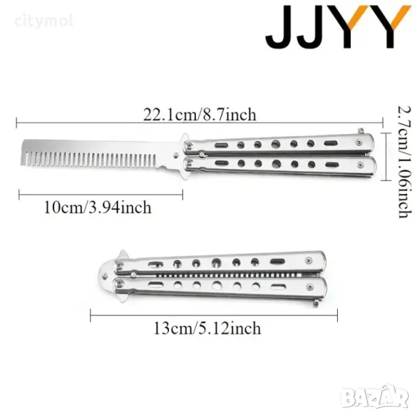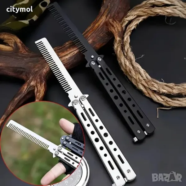 Нож пеперуда тренировъчен, в черен цвят и гребен на мястото на острието