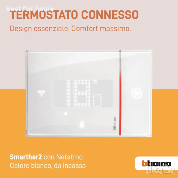 SMART SMARTHER2 С NETATMOST: Свържете дома си с BTicino свързан термостат 2.0 и контролирайте температурата си от вашия смартфон, дори когато сте далеч. Тип: Вграден