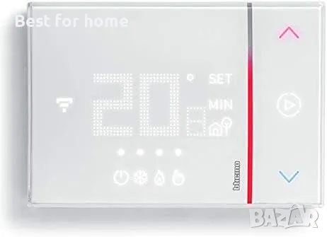 Bticino, Smart WiFi Smarther2 с Netatmo SXW8002, вграден атмосферен термостат, програмируем, контрол на приложението, Alexa и Google, дисплей за влажност, бял, синголо