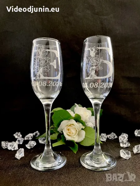 Гравирана чаша за шампанско, снимка 1 - Сватбени аксесоари - 48461474 Гравирана чаша за шампанско, снимка 2 - Сватбени аксесоари - 48461474 1/2