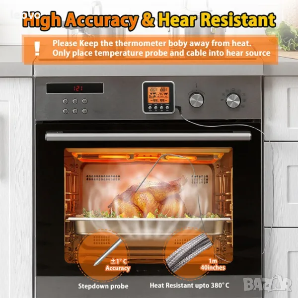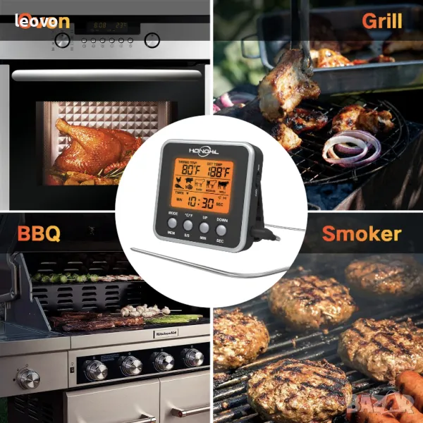 Прецизно измерва вътрешната температура на приготвеното месо и ви позволява да постигнете наистина перфектното печено.