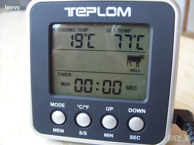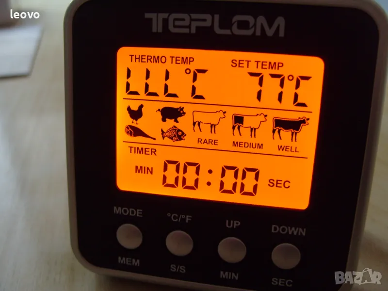 - за удобство термометърът съдържа програми със зададени температури за 7 вида месо: говеждо, телешко, пилешко, свинско, птиче, агнешко и риба
