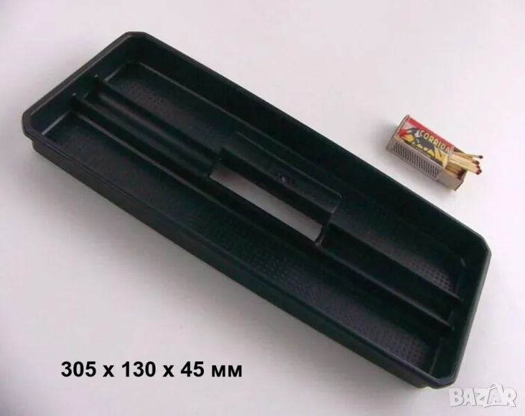 № 1: Цвят: черен; 4 отделения; Дължина 305 x Ширина 130 x Височина 45(дълбочина 25) мм; ЦЕНА: € 1,50(1 бр.);