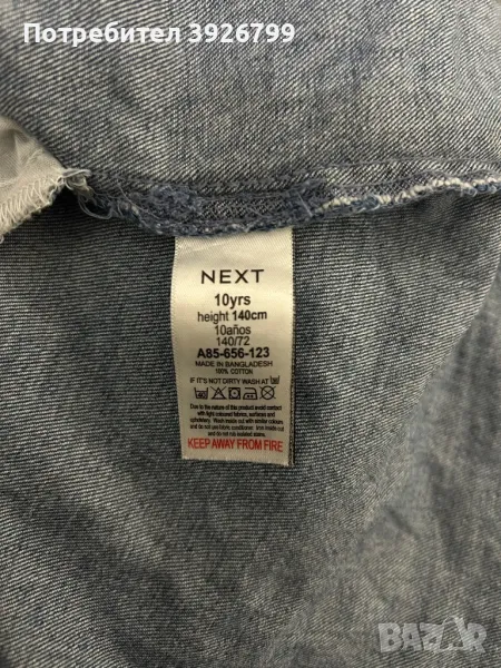 Детска дънкова рокля Next. Размер 140см, 10 години. Платът е много мек и приятен. Роклята е обличана един път за рожден ден