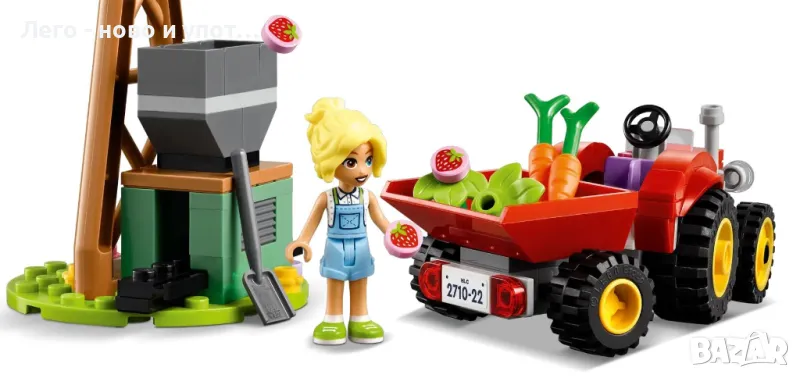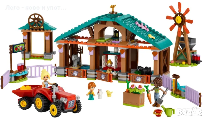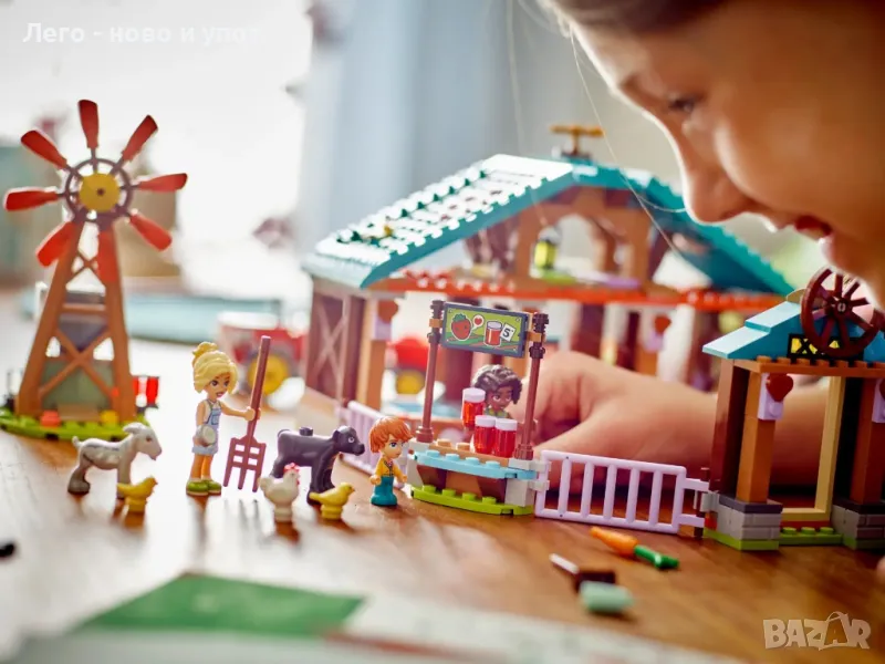 Комплектът позволява построяването на ферма, трактор и вятърна мелница, с които след това децата да се впуснат във вълнуващи игри. Включени са и 3 фигурки на герои, както и фигурки на животни,
