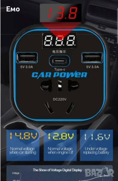 MAX 200W - 2 x USB изход DC 5V / 3000mA на гнездо.