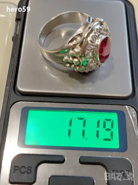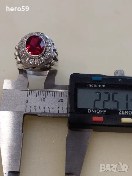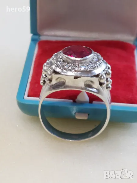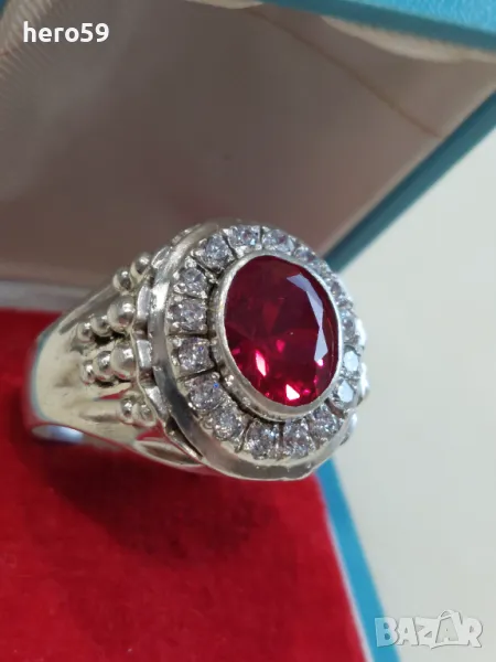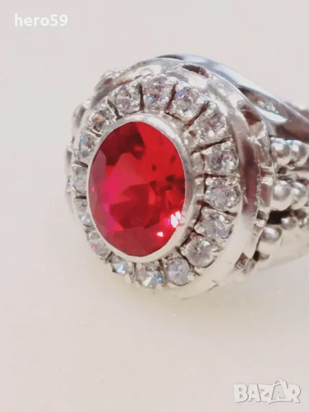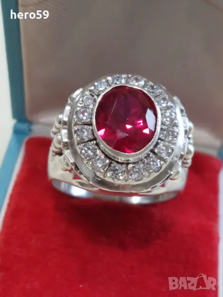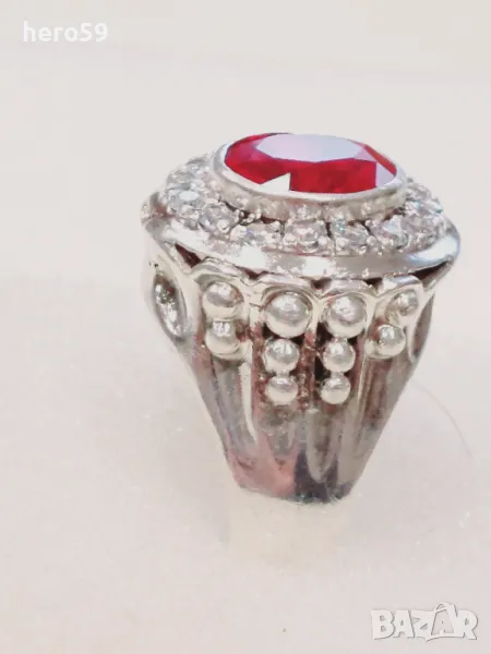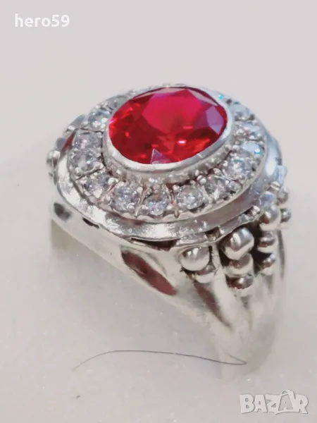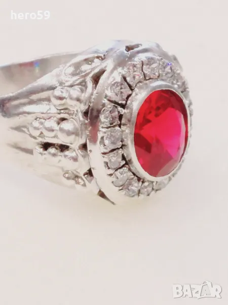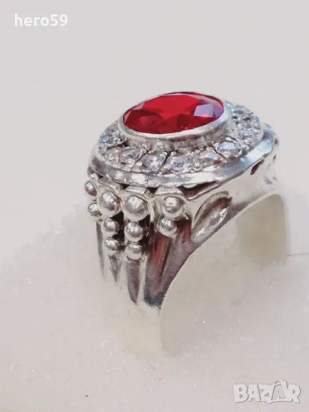 Огромен мъжки сребърен пръстен с рубин и циркони(фараон) → Обява 48462715