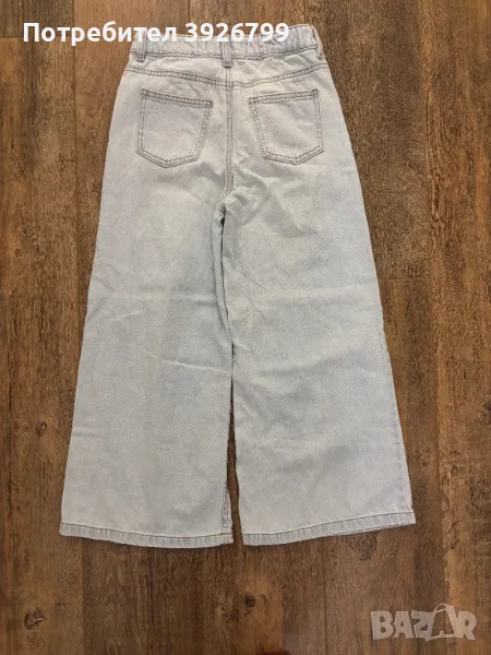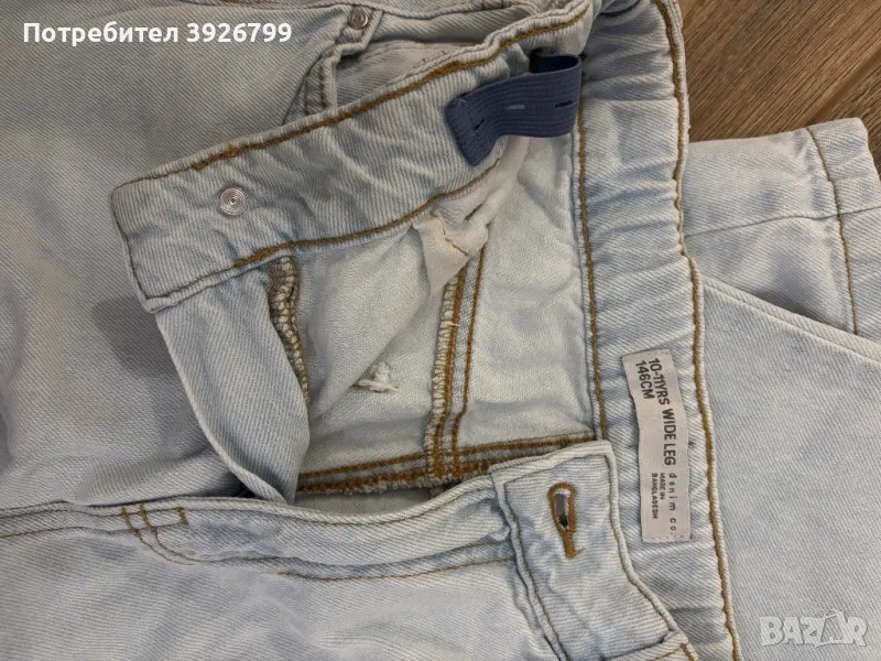 Детски дънки разкроен модел. Размер 146см, 10-11 години. На талията има регулируем ластик