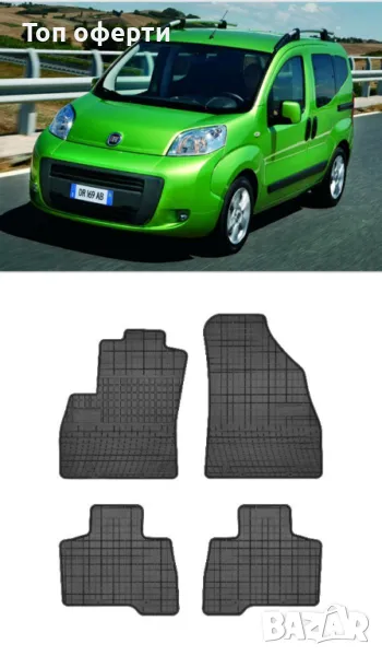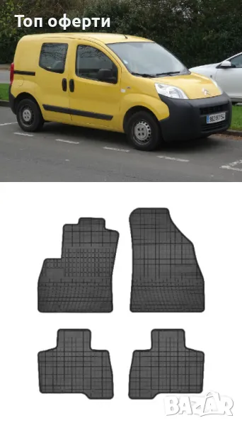 Автомобилни гумени стелки съвместими с Citroen Nemo 2007+, Fiat Florino III 2007+, Peugeot Bipper 2007+, петместни.