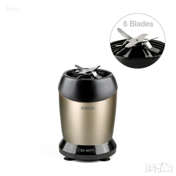Нутри блендер - Muhler, 1200W, 6 ножа, 2 чаши, Antique - Гаранция 24 месеца