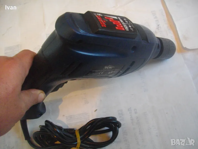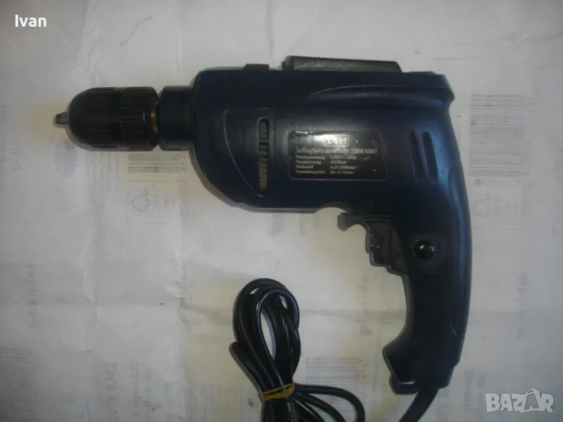 Цена 99 лв. Почти нова 650 ватова силна и мощна ударна бормашина-дрелка,модел на концерна ТСМ.Немско оригинално производство. Марка и модел-TCM SBM6501.С машината много малко е работено.С много запазен външен вид и отлично техническо състояние.Работи много добре-силно,мощно,бързо и ефективно.Мощност на мотора-650 вата,обороти-0-3000 в минута,регулируеми с регулатор на спусъка.Патронник-голям,самонатягащ до 13мм.Автостоп на спусъка.Реверс смяна посока.Гумирано нехлъзгащо се покритие на дръжката.Функция удар и функция пробиване.Горно вградено място с кутия за прибиране на свредла-бургии.