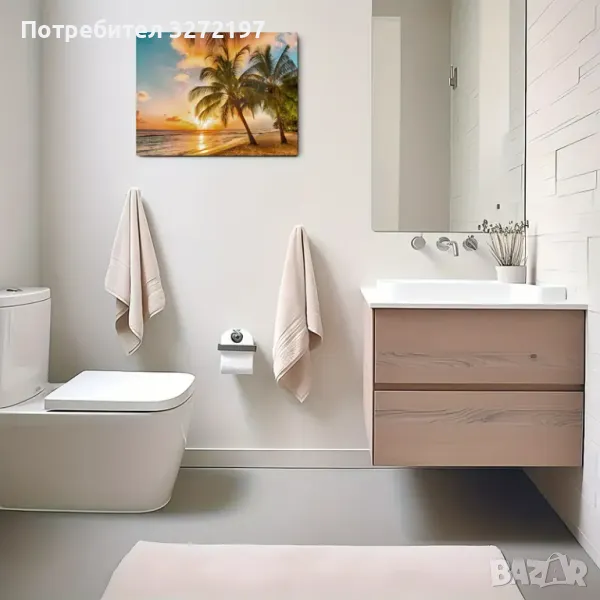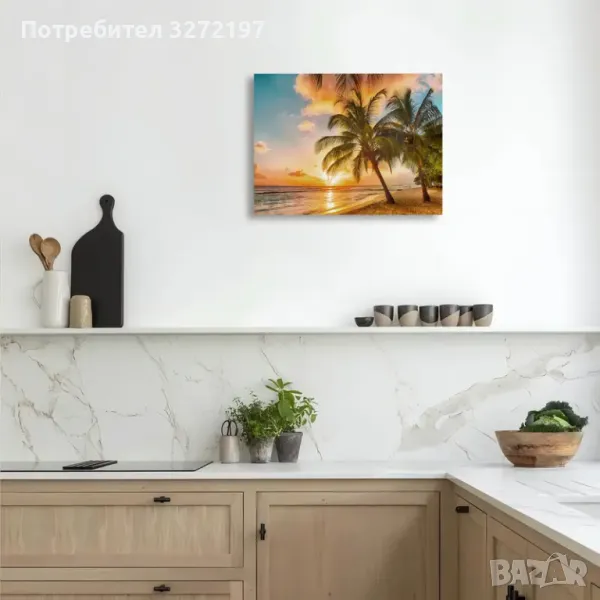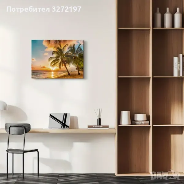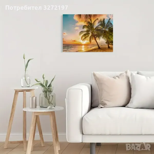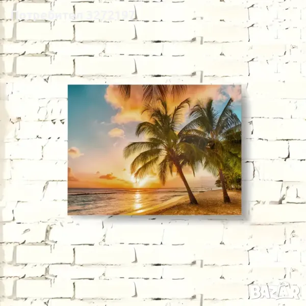 Картина на платно с дървена рамка-Изгрев на тропически плаж,30x40 см. → Обява 48465620