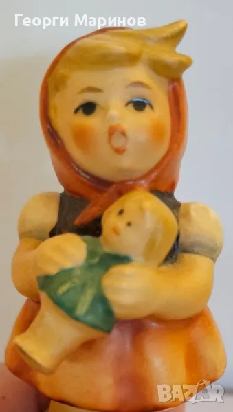 Продава се изключително запазена порцеланова фигурка „Girl with Doll“ (Момиченцето с кукла) на Hummel Goebel. Тази фигурка изобразява малко момиченце, което държи кукла с двете си ръце. Фигурата е изработена от порцелан, има матово покритие и е ръчно рисувана. Фигурката е многоцветна и красиво изработена от Goebel. Тя е с височина 8,5 см, дължина и ширина по 4 см. Фигурката е от колекцията на Hummel, под номер 239/B и е произведена през 1967 г. в Западна Германия (W. Germany).