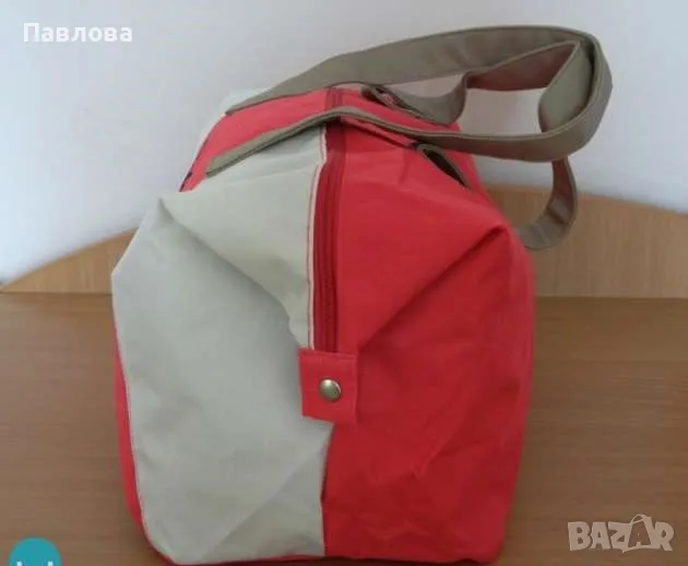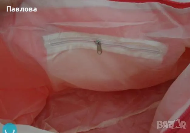 Чантата е от материя промазка, много голяма и удобна за лятото - както ежедневно, така и за плаж, покупки. Разполагам с един брой, нова, неотваряна и неползвана в опаковка.