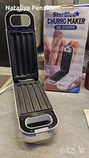 Чисто нова, не исползвана. ВАРИАНТ ЗА ЗДРАВОСЛОВНО ГОТВЕНЕ БЕЗ ПЪРЖЕНЕ — Избягвайте допълнителните калории, когато приготвяте любимите си чуро с помощта на тигана за чуро StarBlue. Този продукт прави чуро без използването на готварско олио и предлага по-здравословен вариант за вашите любими закуски! ЛЕСЕН ЗА ИЗПОЛЗВАНЕ И ИЗПОЛЗВАНЕ - Превърнете времето за закуска в забавно и приятно изживяване, когато приготвяте любимите си закуски с този фантастичен тиган с чуро. Този продукт е лесен за използване; само с натискане на един бутон, чуросите са готови за нула време. Лесен за почистване и съхранение – не е нужно да се притеснявате, че кухнята ви ще се обърка, когато приготвяте чуро, тъй като този тиган с чуро може да се почисти само за няколко минути! Само с няколко измивания и избърсвания получавате безупречен, свеж тиган с чуро.